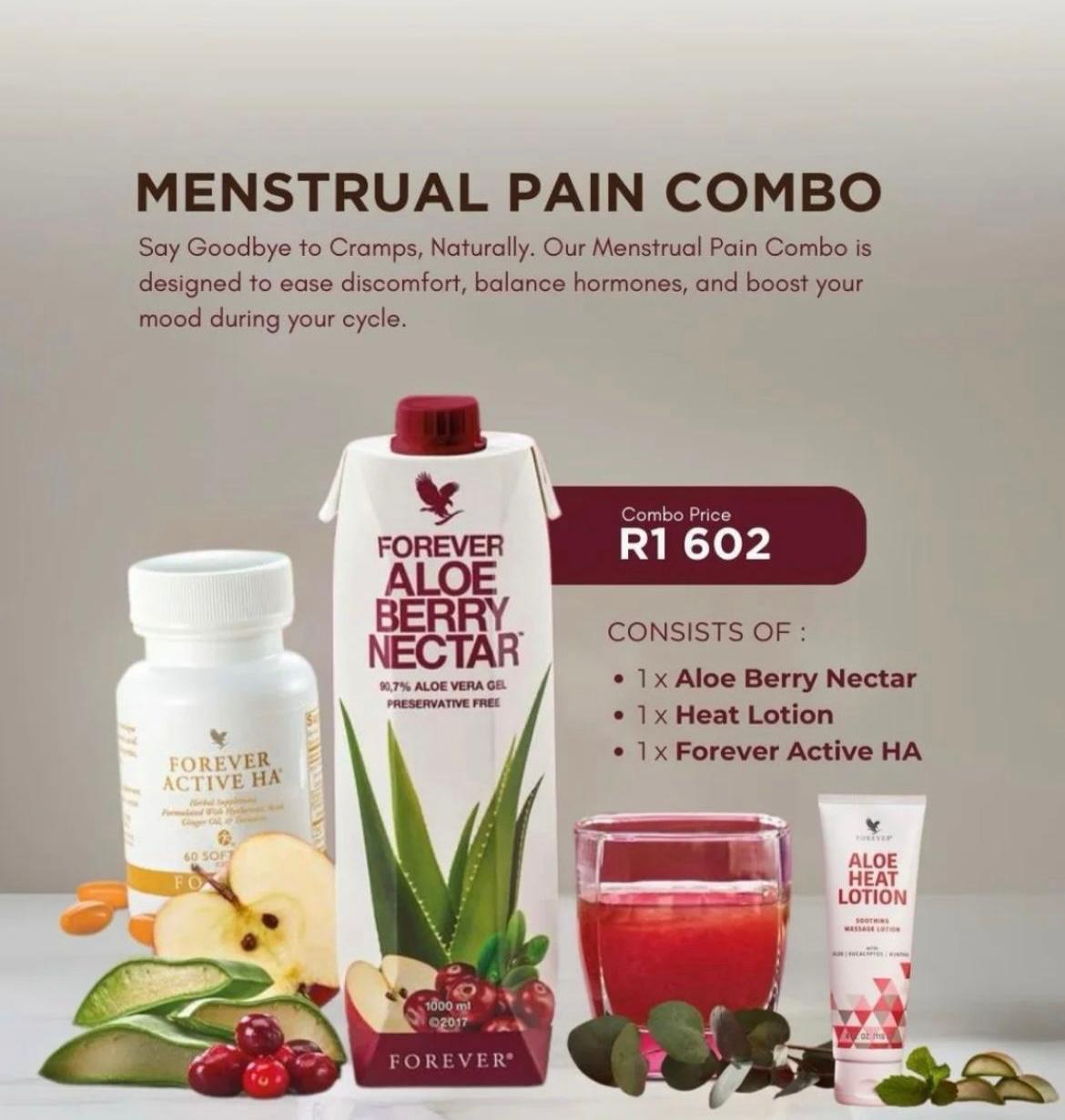 Ease discomfort and support hormonal balance with the Menstrual Pain Combo, a carefully formulated combination designed to help relieve menstrual cramps, soothe discomfort, and support overall women’s wellness. This natural combo combines aloe-based drinks and supplements to promote relaxation, reduce inflammation, and improve overall menstrual health.